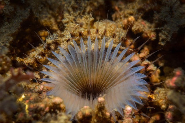 p.028, Sabelle de vase, myxicole, Myxicola infundibulum. Ce ver marin a souvent un comportement grégaire, on peut ainsi rencontrer de véritables assemblages de cette espèce. Rade de Brest – Finistère.