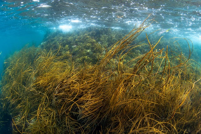 p.037, Paysage d’algues constitué d’himanthalle, Himanthalia elongata, et de varech denté, Fucus serratus. Belle-Île-en-Mer – Morbihan.