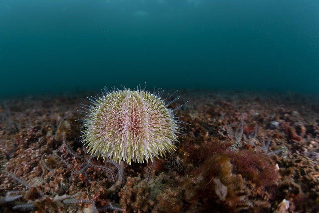 p.095, Oursin commun, Gracilechinus esculentus. Espèce comestible.Rade de Brest – Finistère.