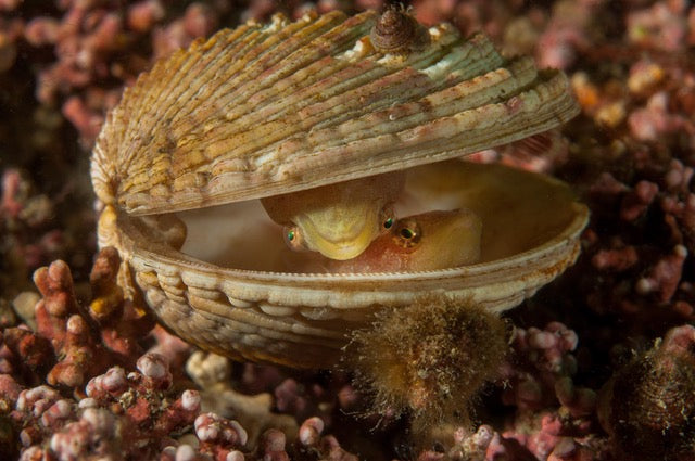 p.110, Porcelaine grain de café, Trivia monacha. Gastéropode très esthétique se nourrissant d’ascidies. Rade de Brest – Finistère.