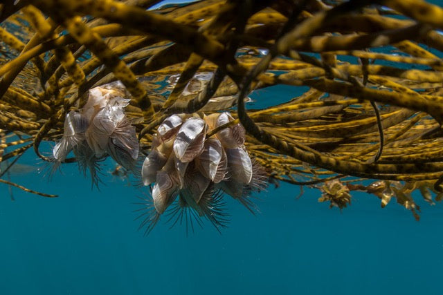 Anatifes à flotteur, Dosima fascicularis. Proche cousin de l’anatife, cette espèce est capable de générer un flotteur spongieux sur lequel les juvéniles se fixent., Erwan Amice, Editions la Nouvelle Bleue, page 114 (p114)